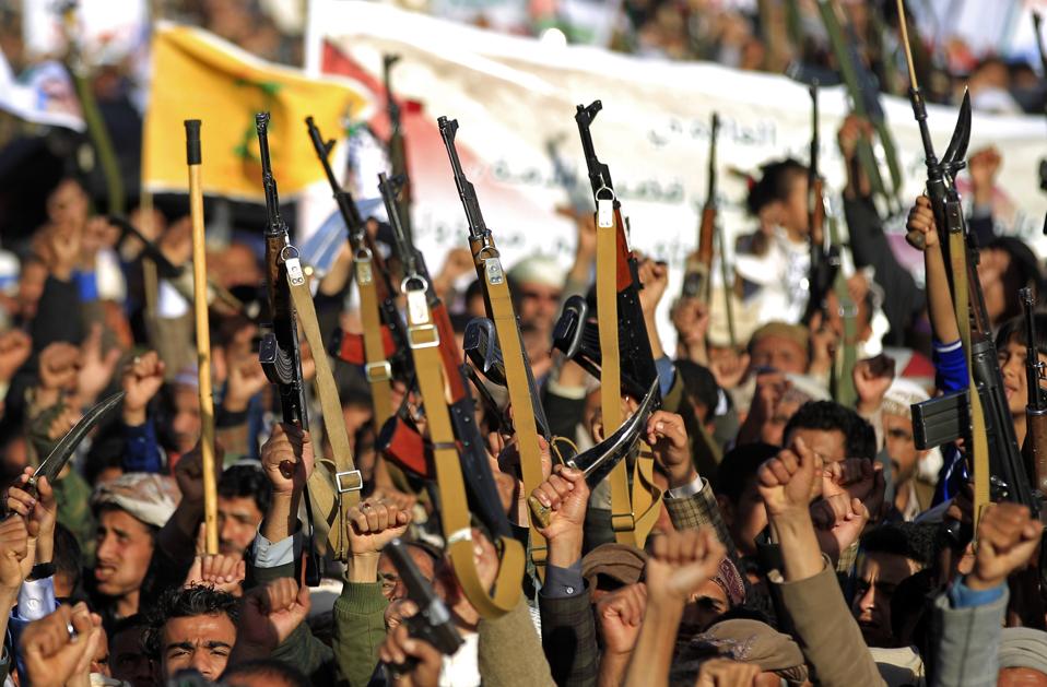 Huthi supporters brandish their weapons during a protest against US President Donald Trump's decision to recognize Jerusalem as the capital of Israel, in the Yemeni capital Sanaa on December 8, 2017. Tens of thousands of people took to the streets of Muslim and Arab countries across the world to protest against Trump's recognition of Jerusalem as the capital of Israel, in a show of solidarity with the Palestinians. / MOHAMMED HUWAIS/AFP/Getty Images